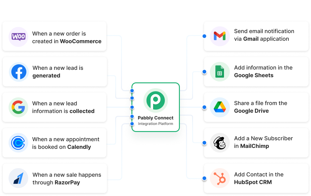 With Pabbly Connect, you can create multiple triggers, actions, and filters to automate complex workflows that involve multiple steps, conditions, and outcomes. For example, you can create workflows that involve sending automated emails, creating new leads in your CRM, updating spreadsheets, and much more.